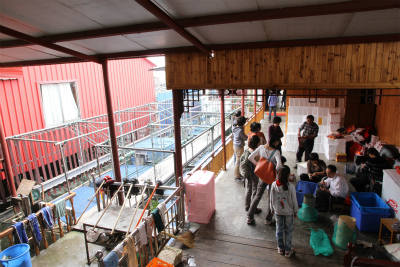 お店のおじさんがひょいっと籠の中に入り込み、