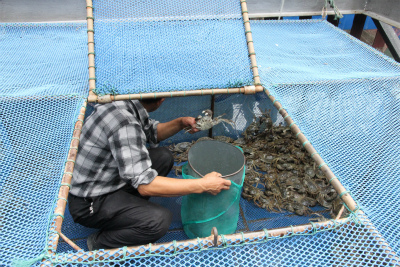 湖に面した上海蟹を選ぶエリアへ