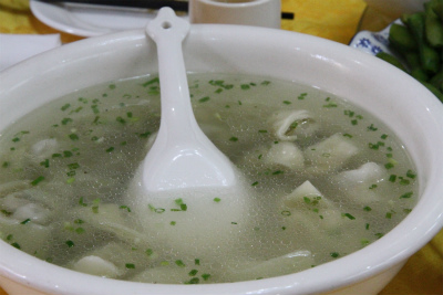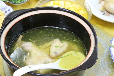 鶏1羽をスープに、半身はゆで鳥として別途食卓に並んでいました。
